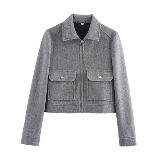 Chic Vintage Women's Bomber Jacket with Turn-Down Collar