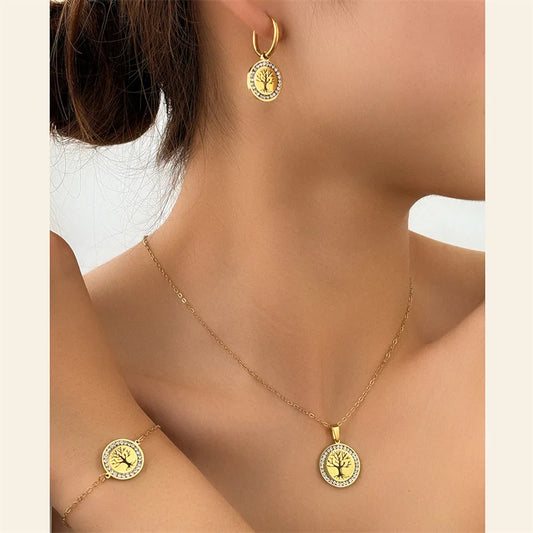 Elegantes Schmuckset mit Lebensbaum aus Kristall für Damen
